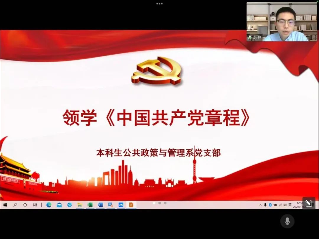 2022年11月25日上午,本科生公共政策与管理系党支部在线上举行了“凝聚力量,团结奋进”的主题党日活动,支部书记苏林同志主持,全体正式党员、预备党员及发展对象参加。