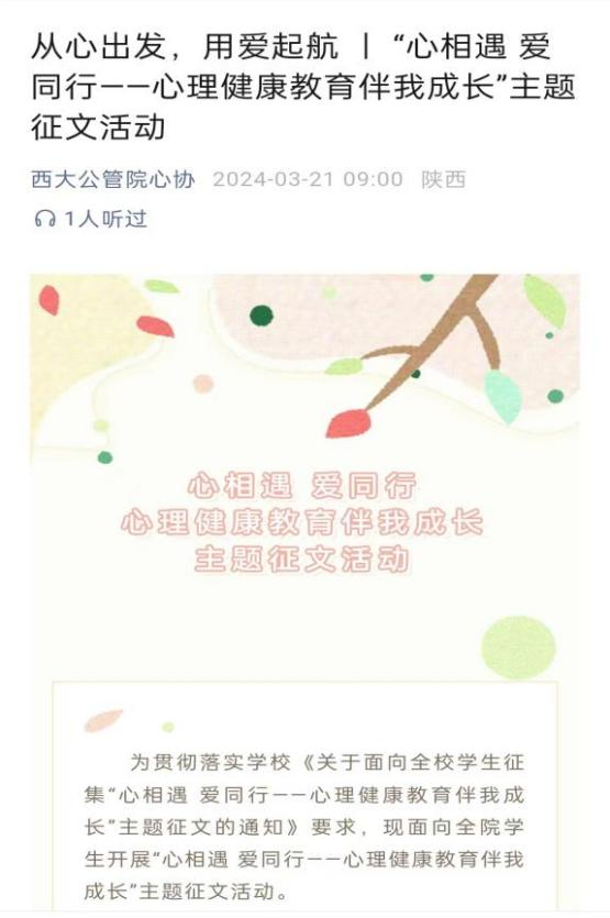 (心海绿洲与主题征文活动截图)