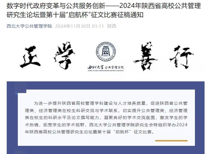 (组织陕西省高校公共管理研究生论坛暨第十届“启航杯”征文比赛)