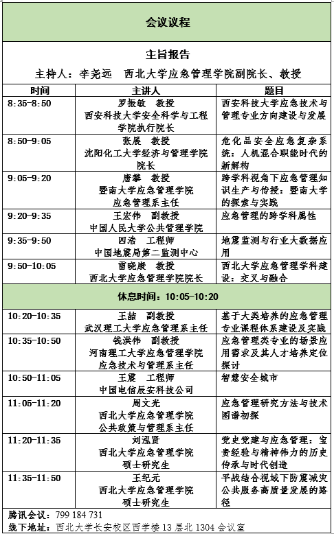 主办单位:西北大学应急管理学院