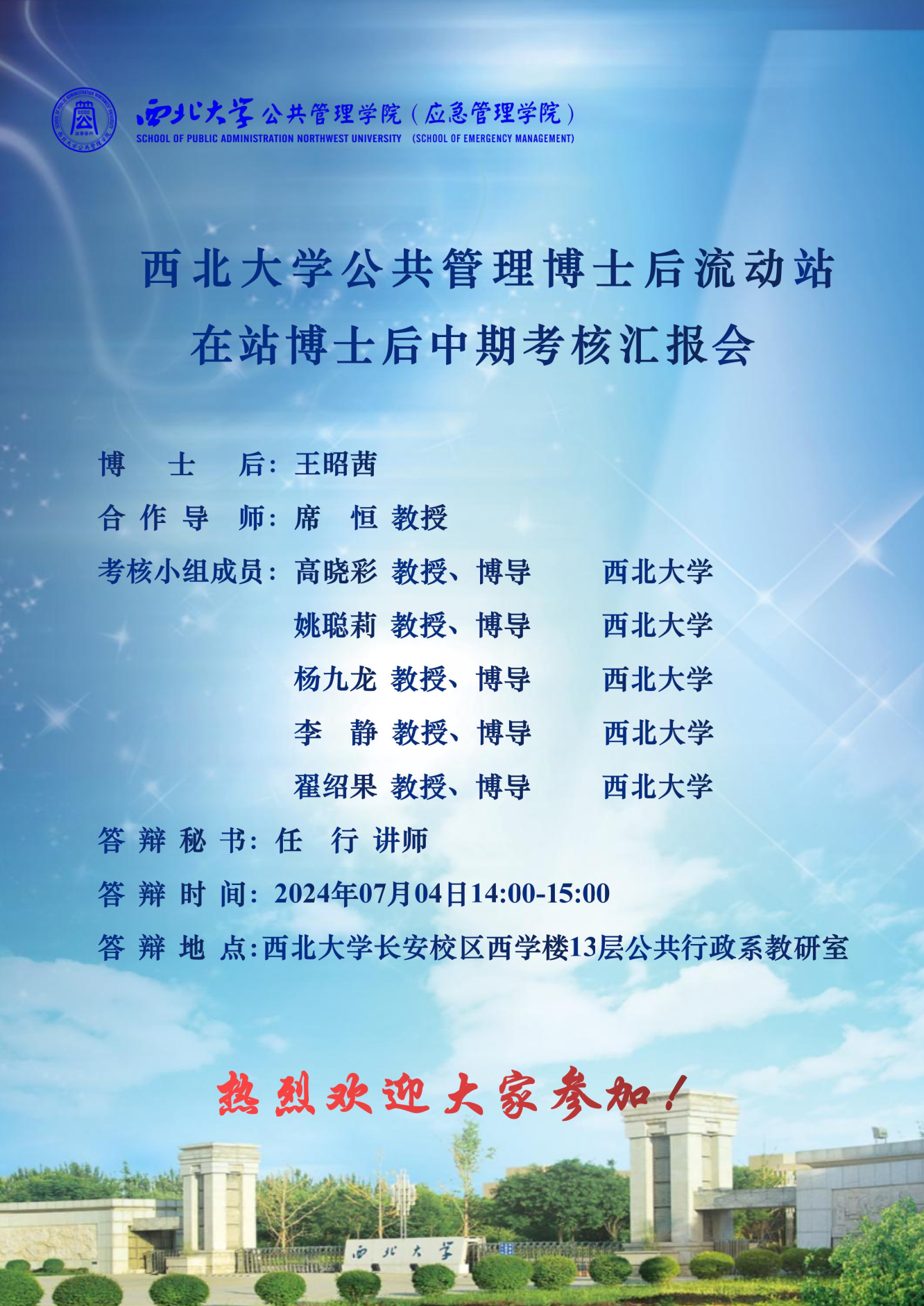 西北大学公共管理博士后流动站在站博士后中期考核汇报会