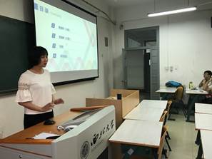 报告伊始,崔旭教授对受邀的2014级本科生阳玉堃,吴硕娜和黄椰曼同学进行了简要介绍。阳玉堃同学在校期间研究硕果累累,在重要期刊上发表了多篇文章,在今年8月将前往美国的北卡莱罗纳大学教堂山分校攻读情报学硕士学位;吴硕娜同学在校期间主持多个大学生项目并获奖,在国创项目上取得了可喜的成绩,现在被免推至中山大学资讯管理学院读研;黄椰曼同学全面发展,在核心期刊《图书情报工作》上独立发文,在研究项目比赛和论文的发表上都取得了骄人的成绩,被推免至武汉大学信息管理学院读研。
