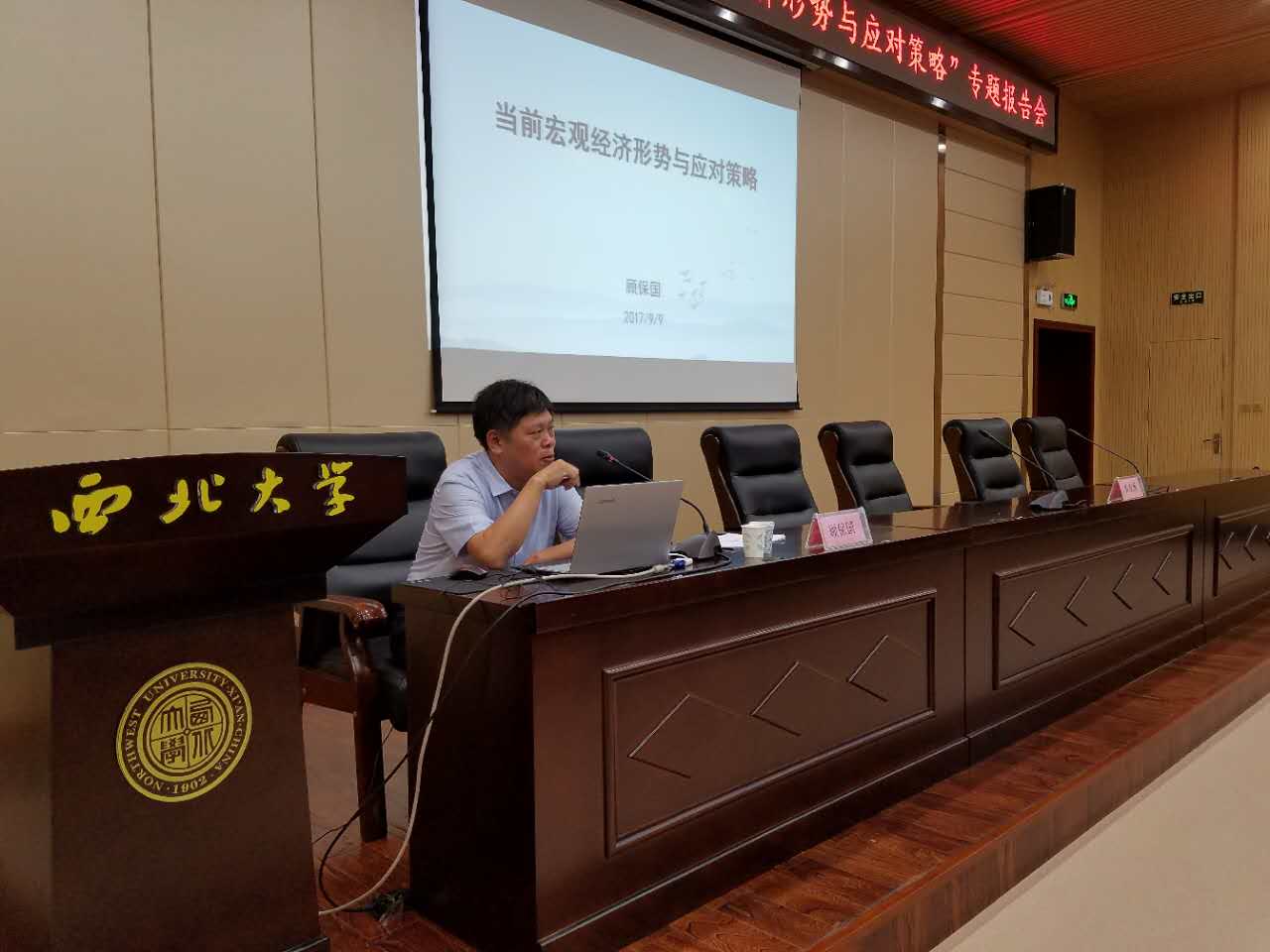 2017年9月9日,著名经济学家顾保国老师应邀为师生做了题为“当前宏观经济形势与应对策略”的学术讲座,雷晓康教授主持了讲座。