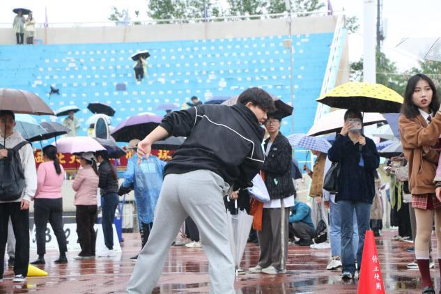 风雨中,同学们激情呐喊