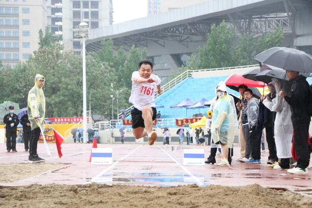 ·在男子学生组三级跳远的比赛中,邱杰同学获得第二名。